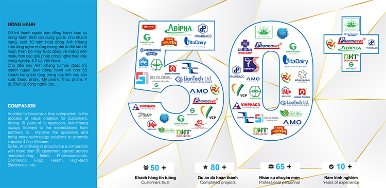 Anh Khang cung cấp giải pháp toàn diện về xây dựng phòng sạch phục vụ sản xuất, bao gồm Tư vấn - Thiết kế - Cung cấp vật tư thiết bị - Thi công lắp đặt hoàn thiện. Cho đến nay Anh Khang đã trở thành một đơn vị uy tín với hơn 50+ khách hàng tin tưởng hợp tác và 80+ dự án được triển khai trải rộng trong các lĩnh vực sản xuất: Dược phẩm, Mỹ phẩm, Thực phẩm, Y tế, Điện tử công nghệ cao.
